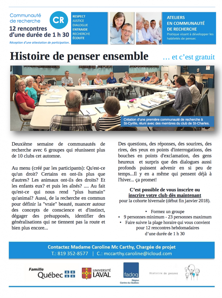 ATELIERS «HISTOIRE DE PENSER» en communauté de recherche